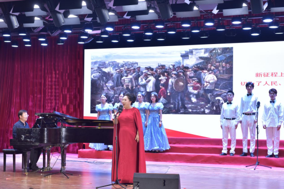 为进一步深入学习贯彻习近平新时代中国特色社会主义思想,用实际行动全面落实主题教育“学思想、强党性、重实践、建新功”的总要求,以饱满的热情、优异的成绩迎接中国共产党成立102周年。6月29日晚,必赢国际437官网在艺术中心举办了“复兴路上的歌声”沉浸式音乐党课。校党委书记孙功奇,校长、党委副书记尹新明,党委副书记、工会主席高炜,纪委书记、监察专员鲍晋选及全体中层干部参加了此次党课。